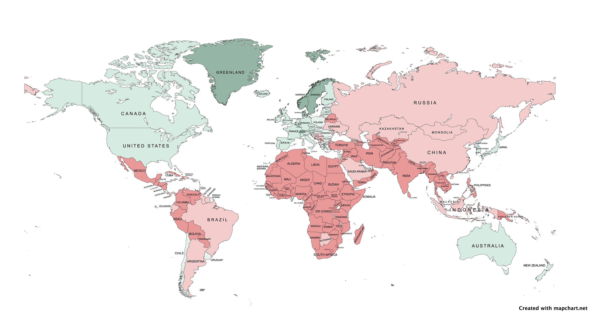This allowed me to see the big picture. My own country, the United States, for instance, gets a C on governance, and has been trending downward over the past decade as we’ve received lower V-DEM scores related to “election-related intimidation and violence,” “equal access to power/resources,” “access to justice,” and “polarization.” I think it highly likely we’ll see a significant drop this year once 2025 results are tabulated. We would have gotten an A on economics if it were up to our GNI alone because we are one of the richest countries in the world, but we have lower income equality compared to other rich countries, which lowers our economics score to a B.